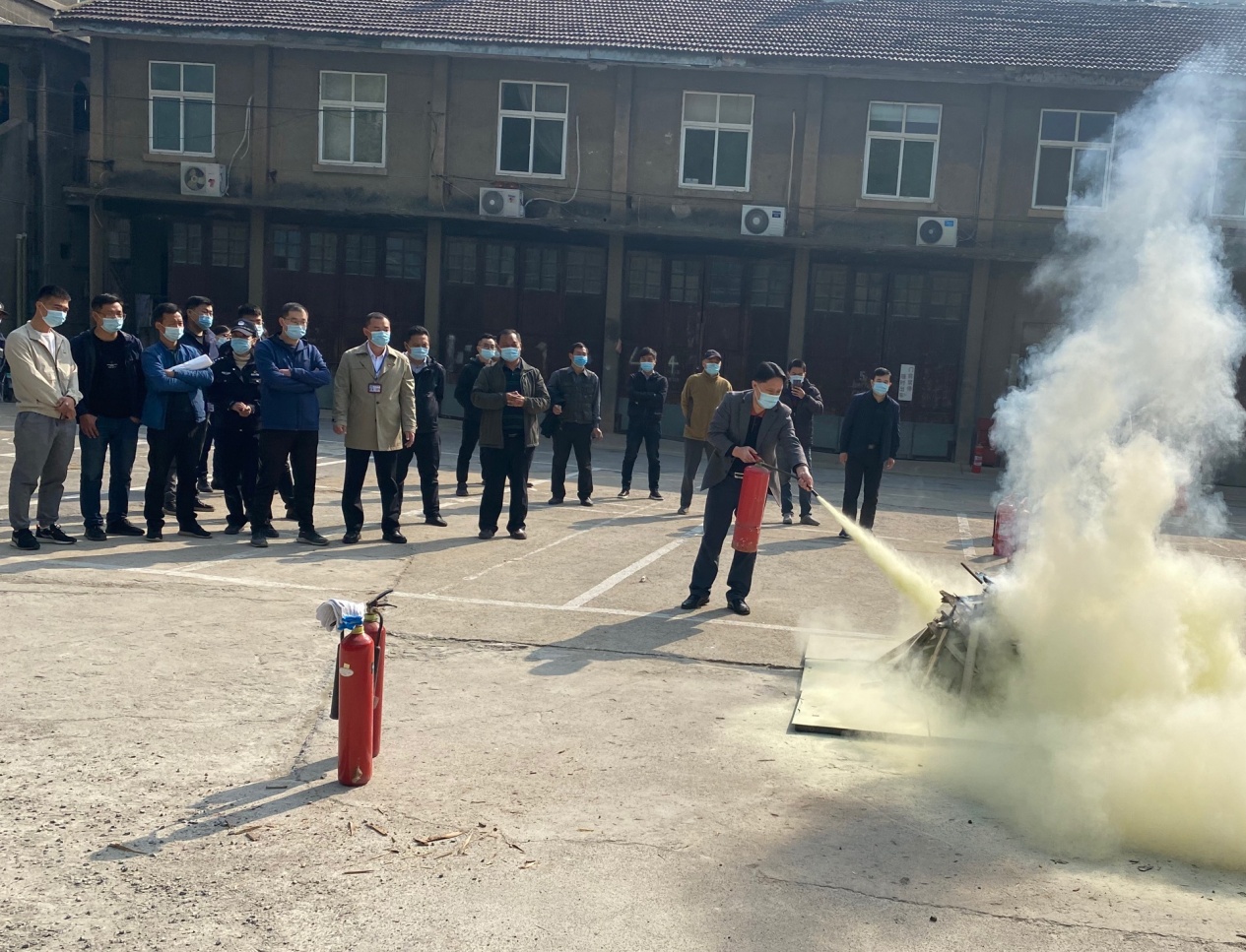 首先,安全培训人员讲解了有关火灾现场的应急处置方案,灭火器的使用方法以及相关的注意事项,并亲自演练了灭火器的使用方法。